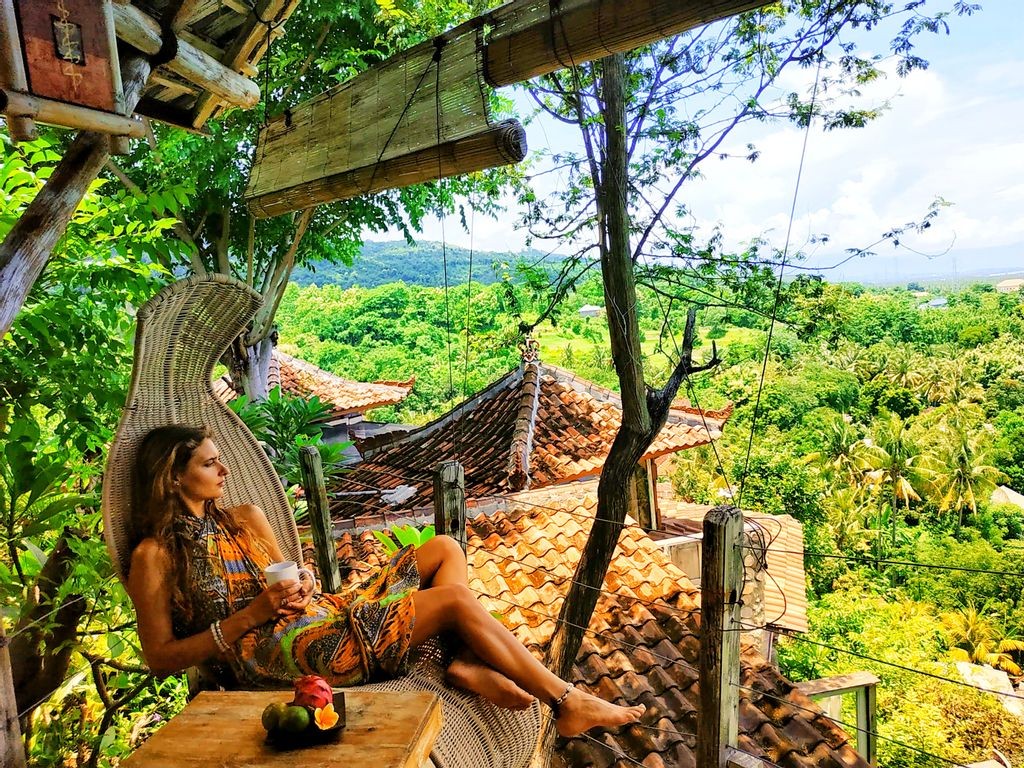 The main center of the retreat programs is at Dream Hill Retreat Center. During your stay, you can choose one of the accommodations below that will better suit your requirements. Shuttle between all hotels is available and organized. -Dream Hill Retreat Center Mostly yoga classes and cultural activities are conducted at the Dream Hill Retreat Center. The property stands on the top of the rock with 360 degrees view on the Bali Sea, mountains, rice fields, and Kaliasem village. To get to the top you have to climb 98 steps, but it is definitely worth it! A quirky wooden hotel is the most extraordinary accommodation you have ever stayed in. It has ashram construction type with small single cabins or twin/double rooms with shared bathrooms. One delux bungalow with private bathroom and private lounge pool is available for 1 or 2 people (double bed, fan). -Santhiku Hotel,Villas,Yoga & SPA Santhiku Hotel, Villas Yoga & SPA is the place where Santhika Retreat Center started its history in 2017. Nowadays we conduct main activities at Dream Hill, but we still accommodate our guests and sometimes make yoga classes at Santhiku. This place is recommended for those who require air-conditioning and private bathroom in his own room. There is a small lounge pool on spot, SPA center, and restaurant as well.